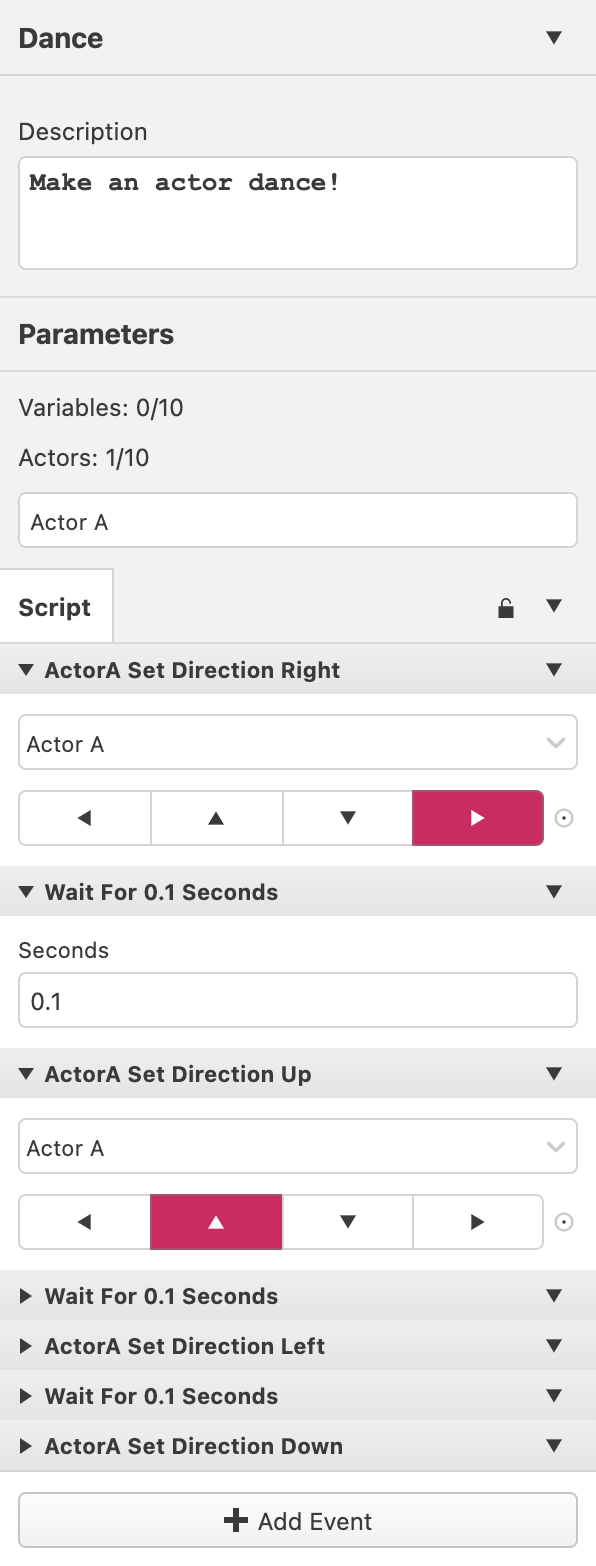 Custom Scripts allow you to create reusable procedures in your game that can be called from any of your scripts.